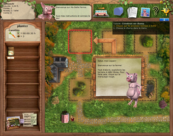 Ma belle ferme fait débuter le joueur avec un terrain tout simple, plein de cailloux et de parasites. Vous ne disposez que de céréales et de carottes au départ, mais très vite, vous découvrez que ces deux denrées peuvent vous faire progresser au niveau suivant. Planter, arroser, récolter: la formule magique!